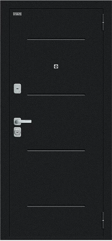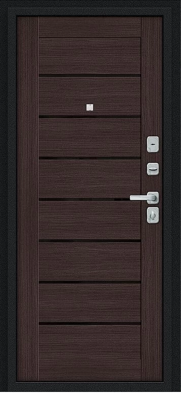 Надежная входная Дверь Браво Техно/BChrome Букле черное/Wenge Melinga премиум класса по цене 34 747 руб. Большая толщина стали защитит от проникновения в ваш дом, квартиру или коттедж. Используется очень качественная фурнитура: замки, цилиндры, ручки, защелки. Покрытие и отделка двери изготовлено под внимательным контролем производителя. Дверь имеет долгий срок службы и гарантию.